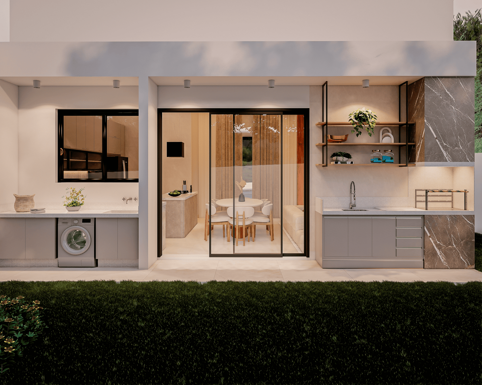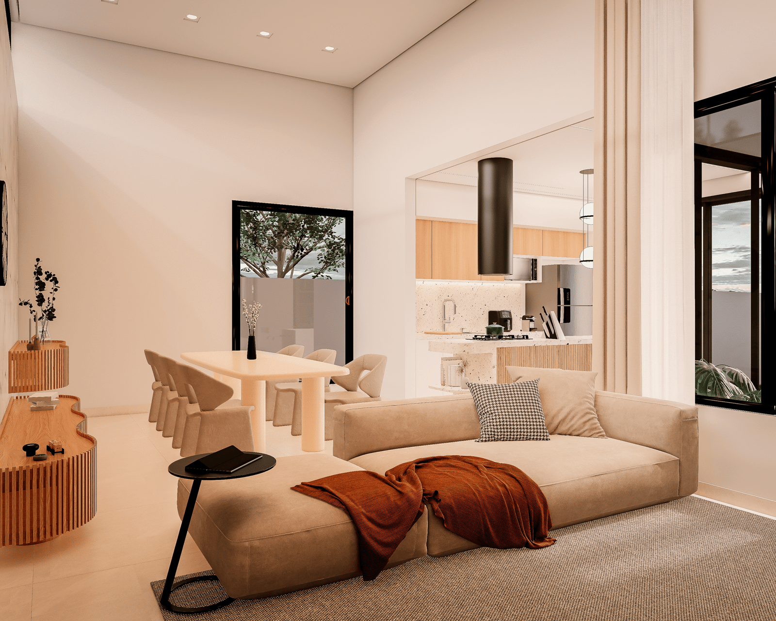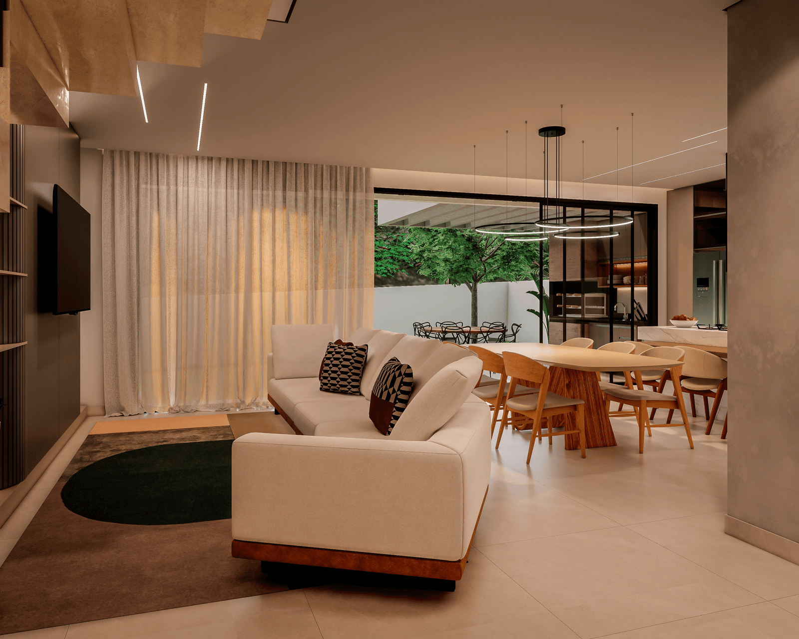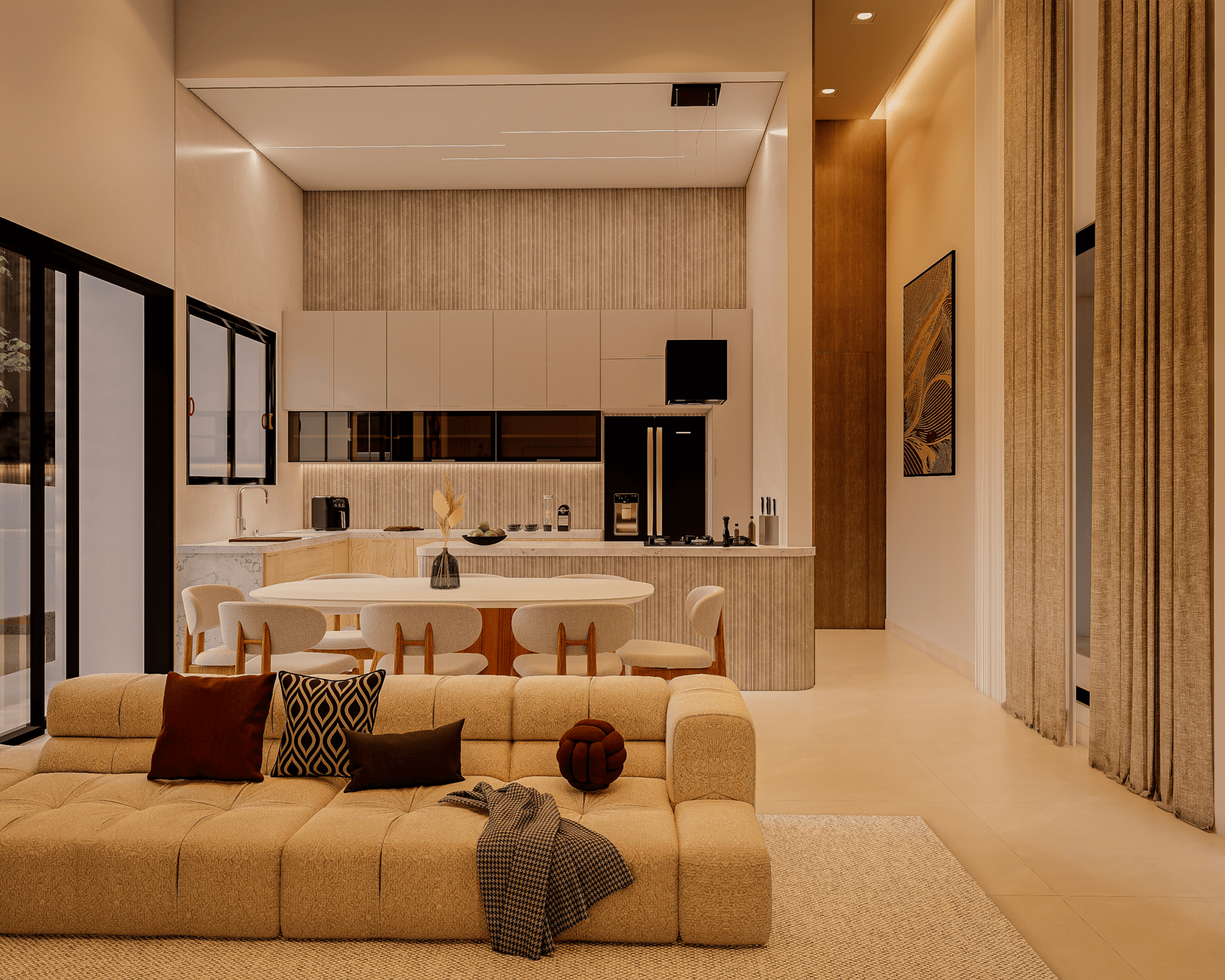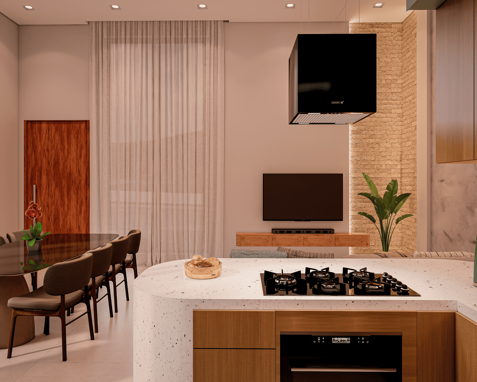 Com acabamentos de padrão premium e um projeto de iluminação sofisticado, o Modelo 5 une luxo e modernidade em cada detalhe. O destaque principal é a integração total dos ambientes, proporcionando amplitude e convivência para quem não abre mão da exclusividade.
