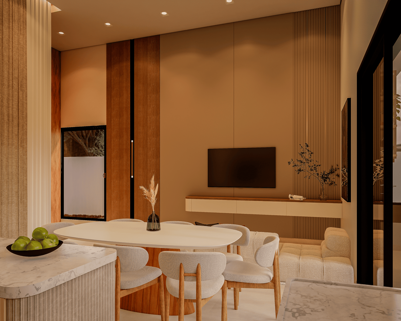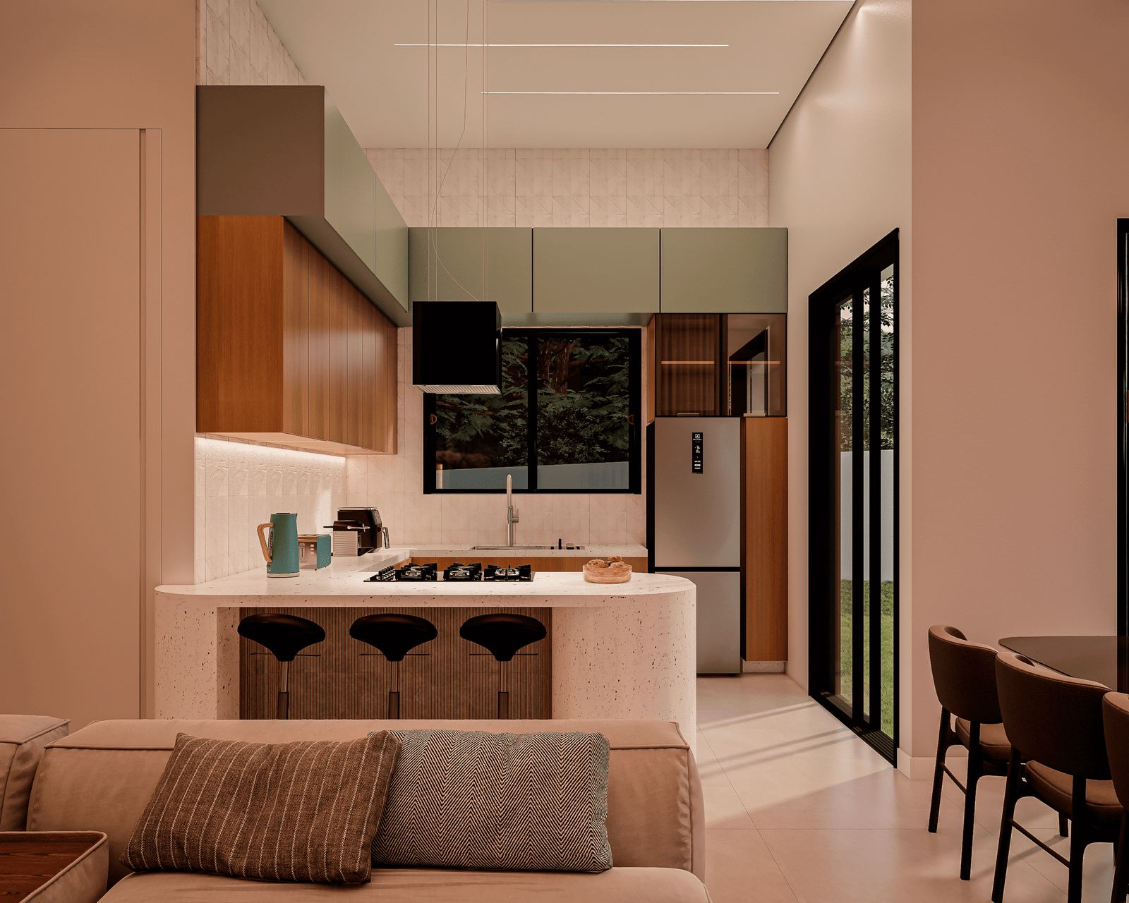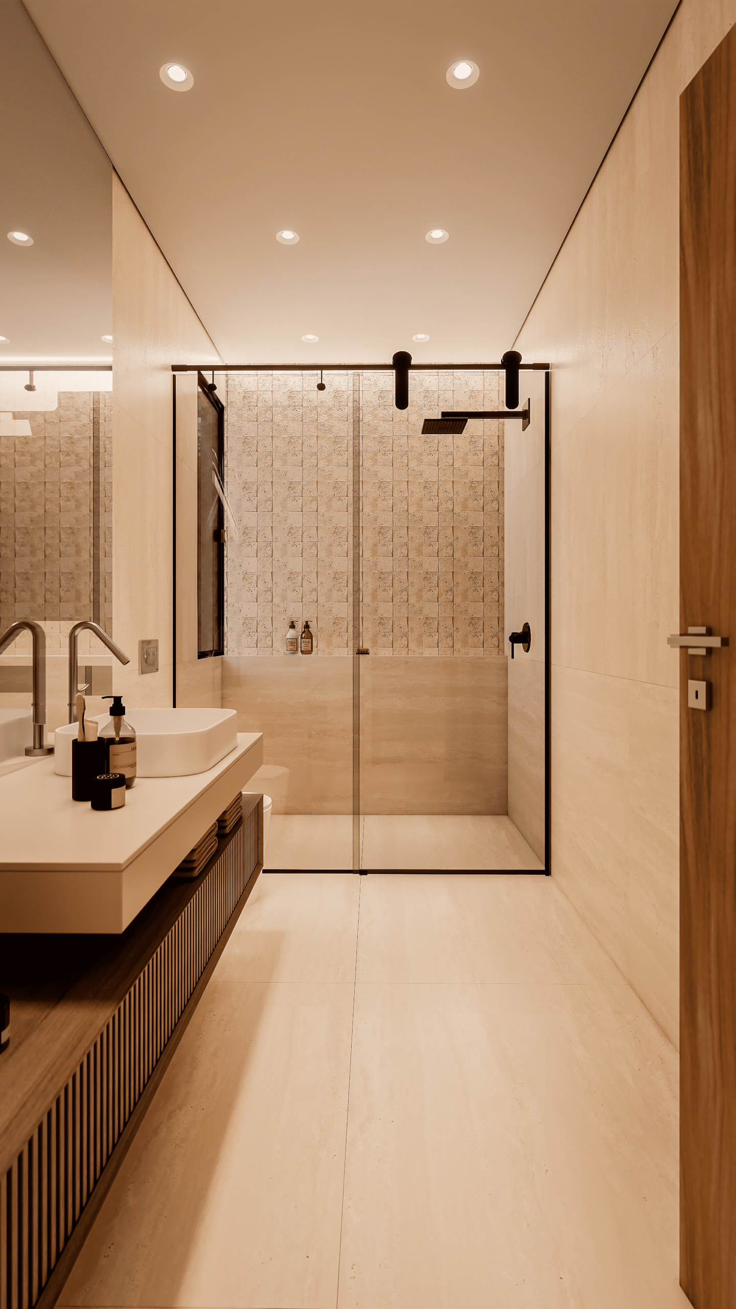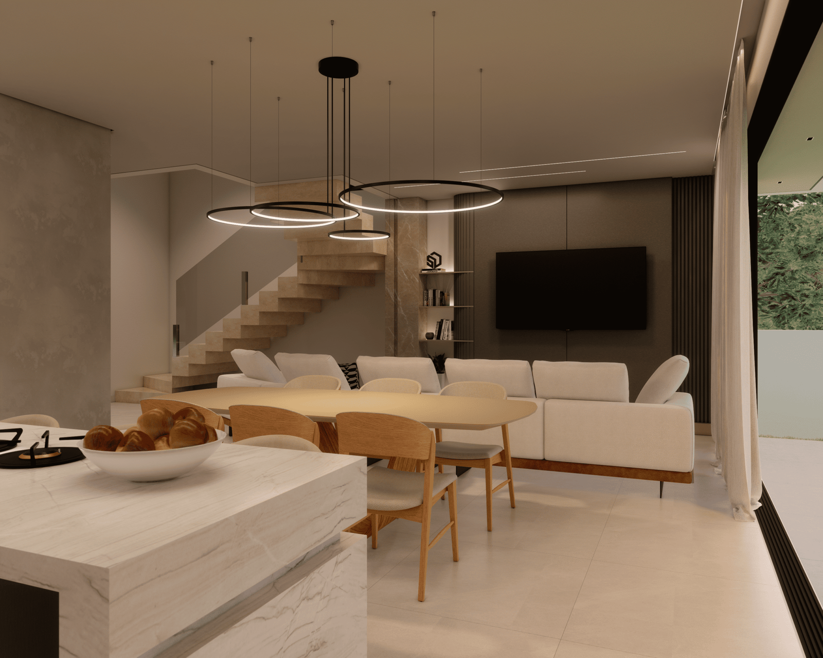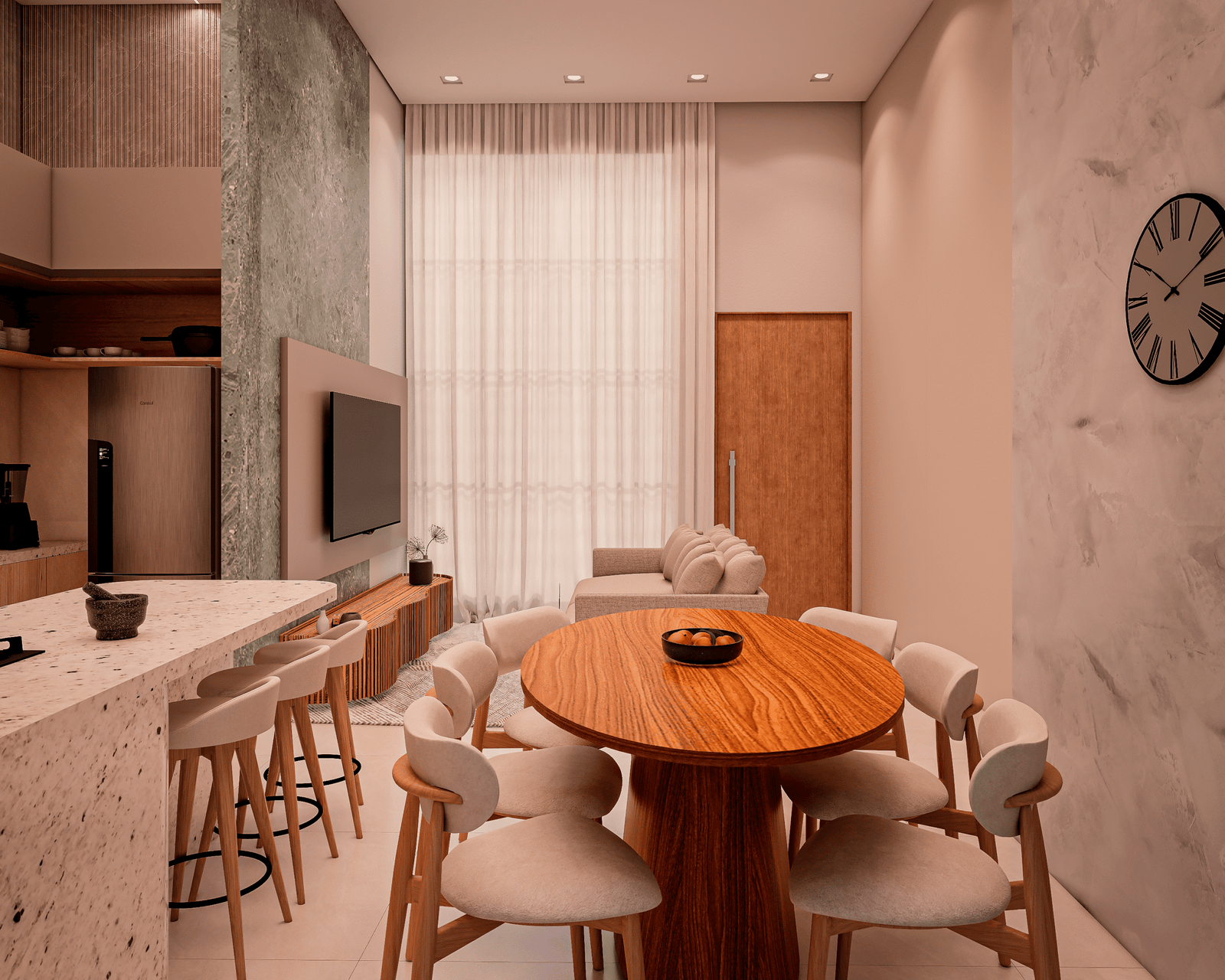 Com acabamentos de padrão premium e um projeto de iluminação sofisticado, o Modelo 5 une luxo e modernidade em cada detalhe. O destaque principal é a integração total dos ambientes, proporcionando amplitude e convivência para quem não abre mão da exclusividade.