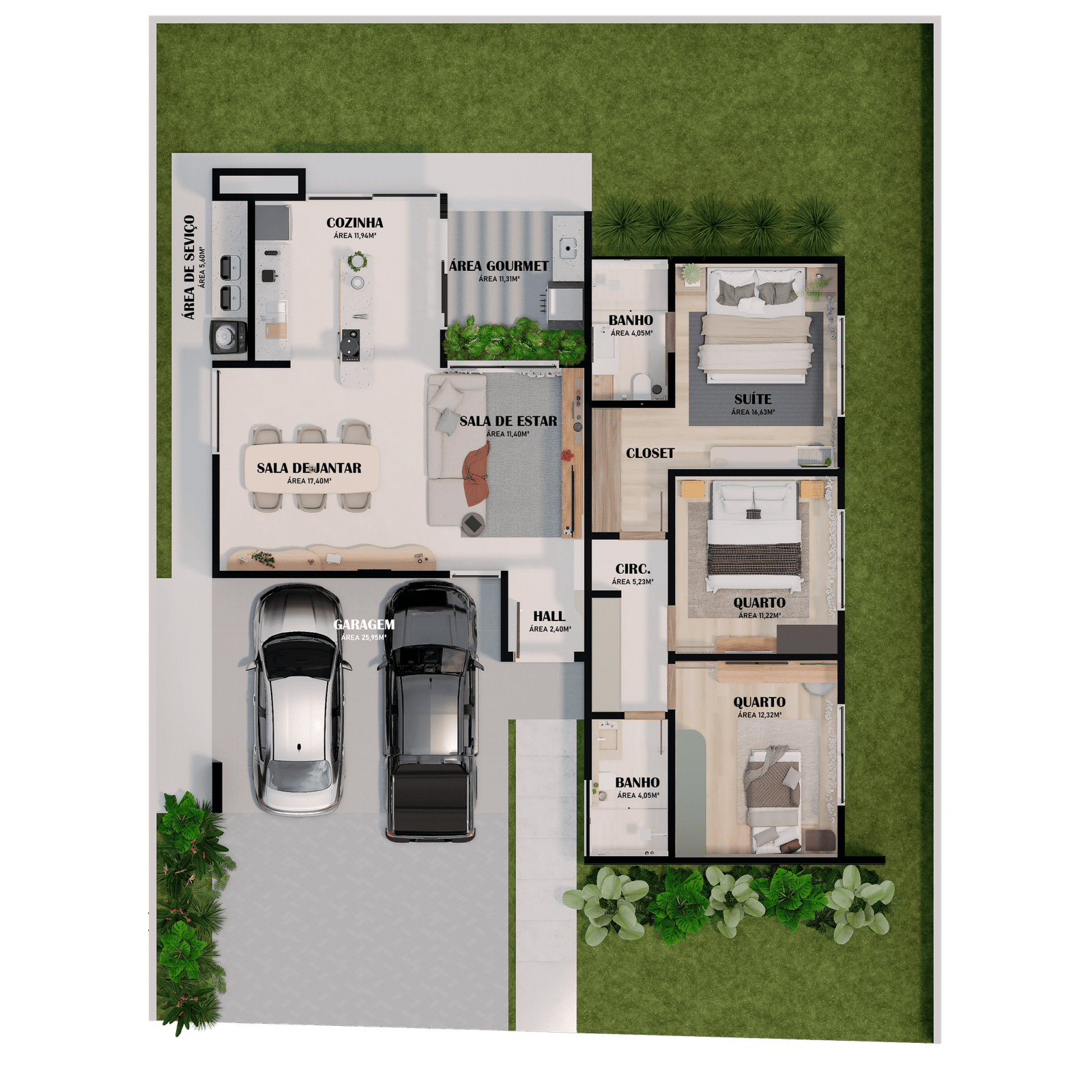 Área Construída: 126,96 m².