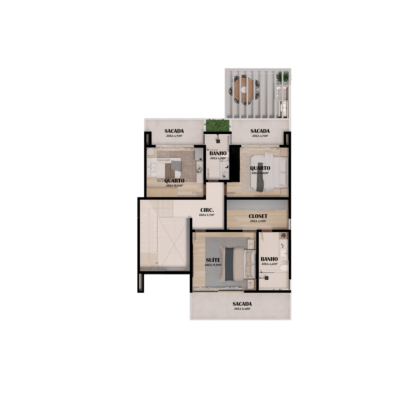 Projetado para famílias que valorizam o convívio sem abrir mão da liberdade individual. Com uma das maiores áreas construídas da categoria, esta planta privilegia a circulação fluida e uma integração social, perfeita para grandes recepções e momentos inesquecíveis.